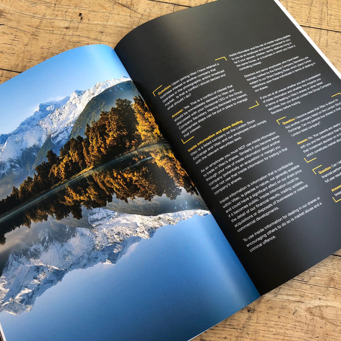 Design, artworking and production for Vitec's Code of Conduct booklet, including translation for international markets.